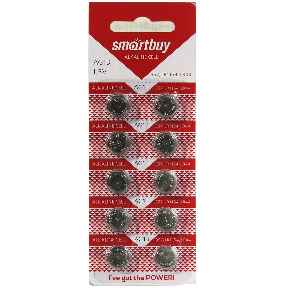 Батарейка щелочная SmartBuy AG13 (L1154/LR44/A76/357), в упаковке: 10 шт.