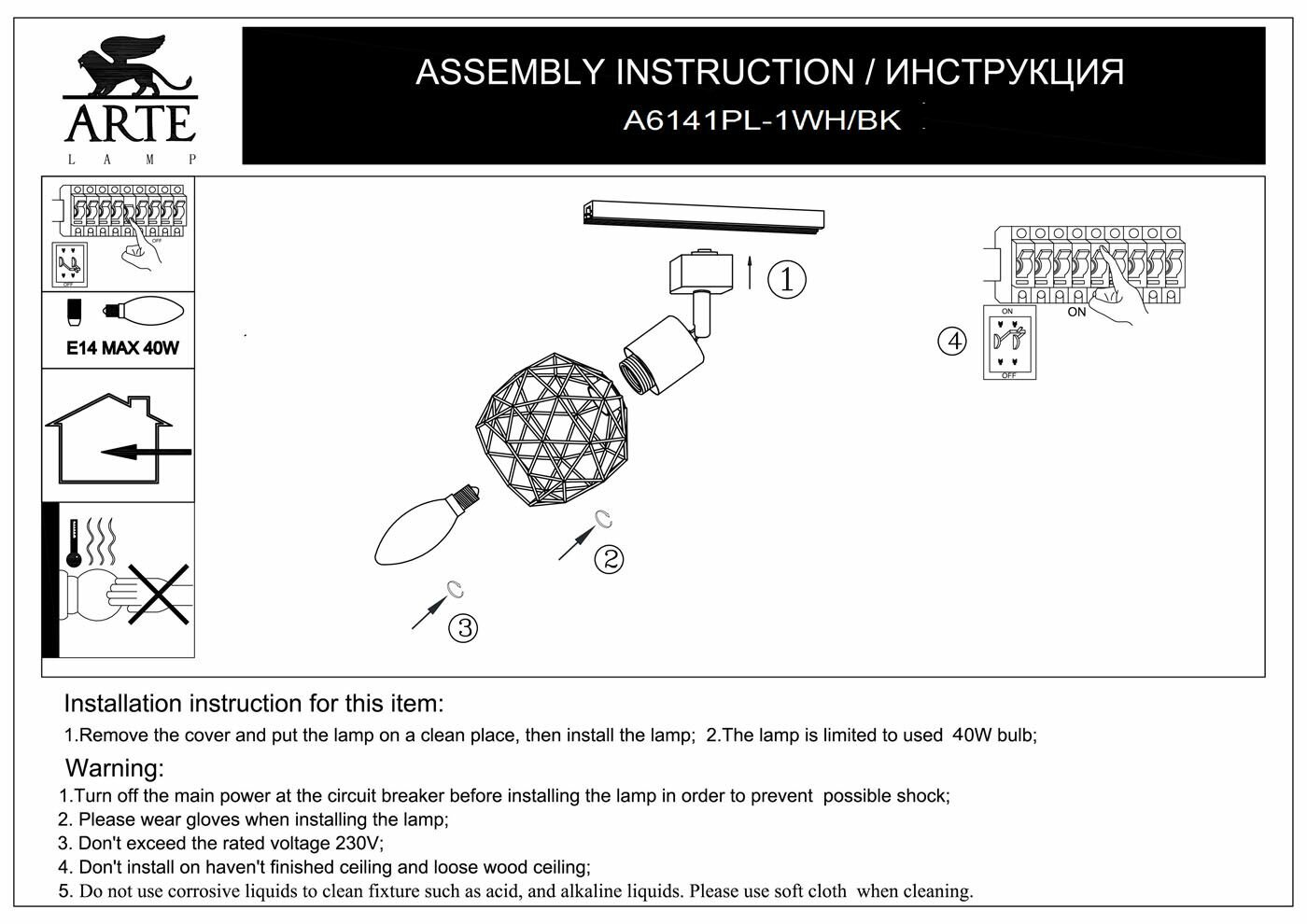 | Минусы: | К сожалению, почти негде не упоминается что это трековый светильник! И к нему нужно докупать трек (шину) для его монтажа... на сайте arte lamp можно найти короткую, круглую шину для 1 светильника... |