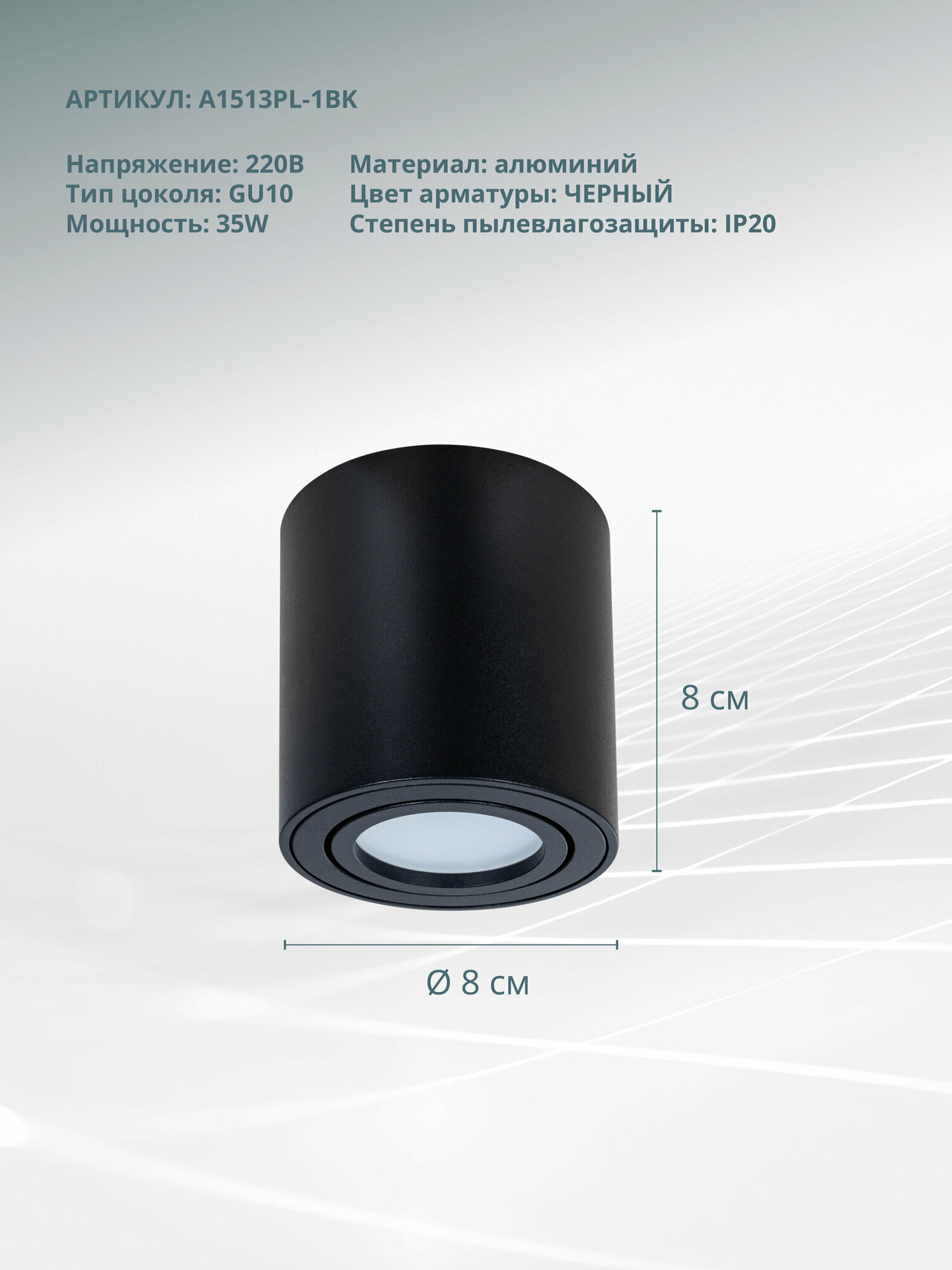 Накладной светильник Arte Lamp Intercrus A5543PL-1BK, GX53, кол-во ламп:1шт., Черный
