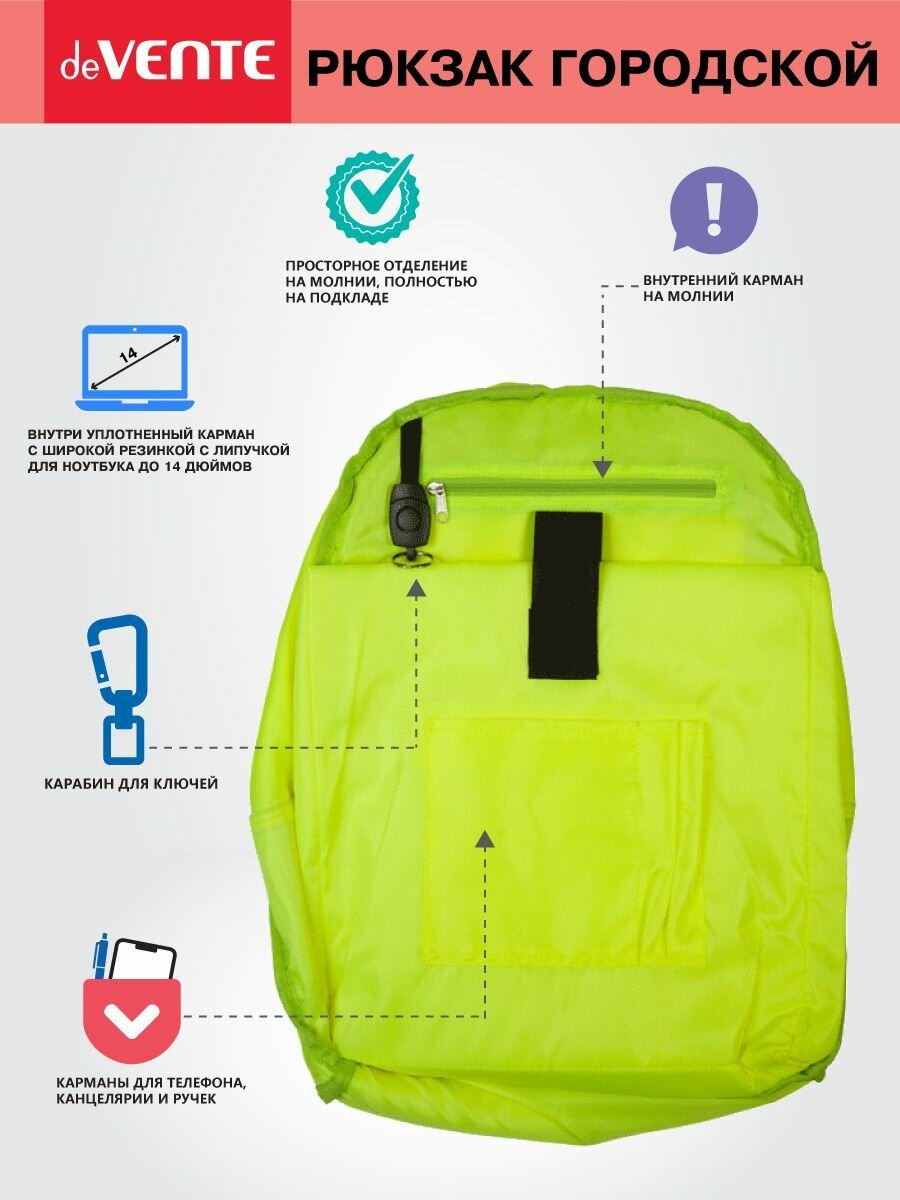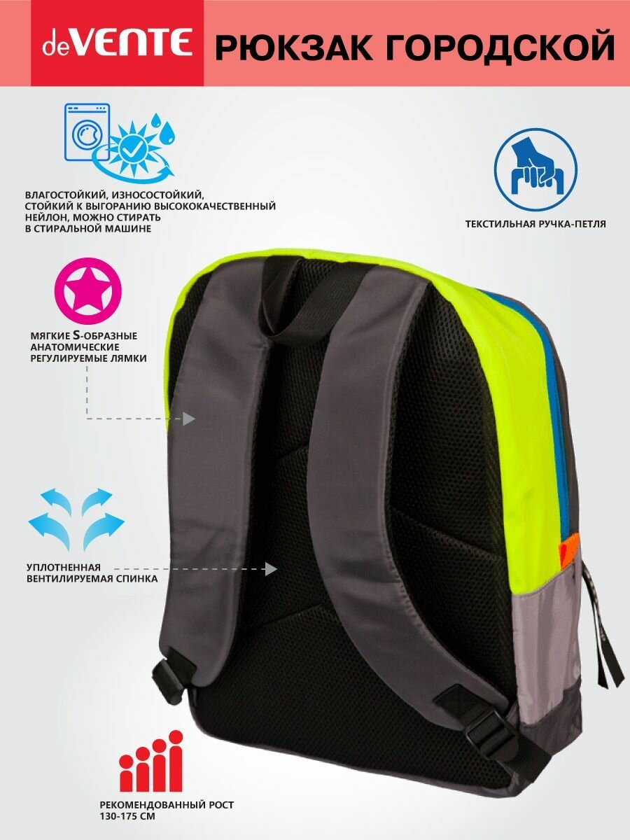 СохранитьРюкзак "deVENTE. Limited Edition. Block Colours. Neon" подростковый 40x30x14 см (14 л) вес 300 г интересное: