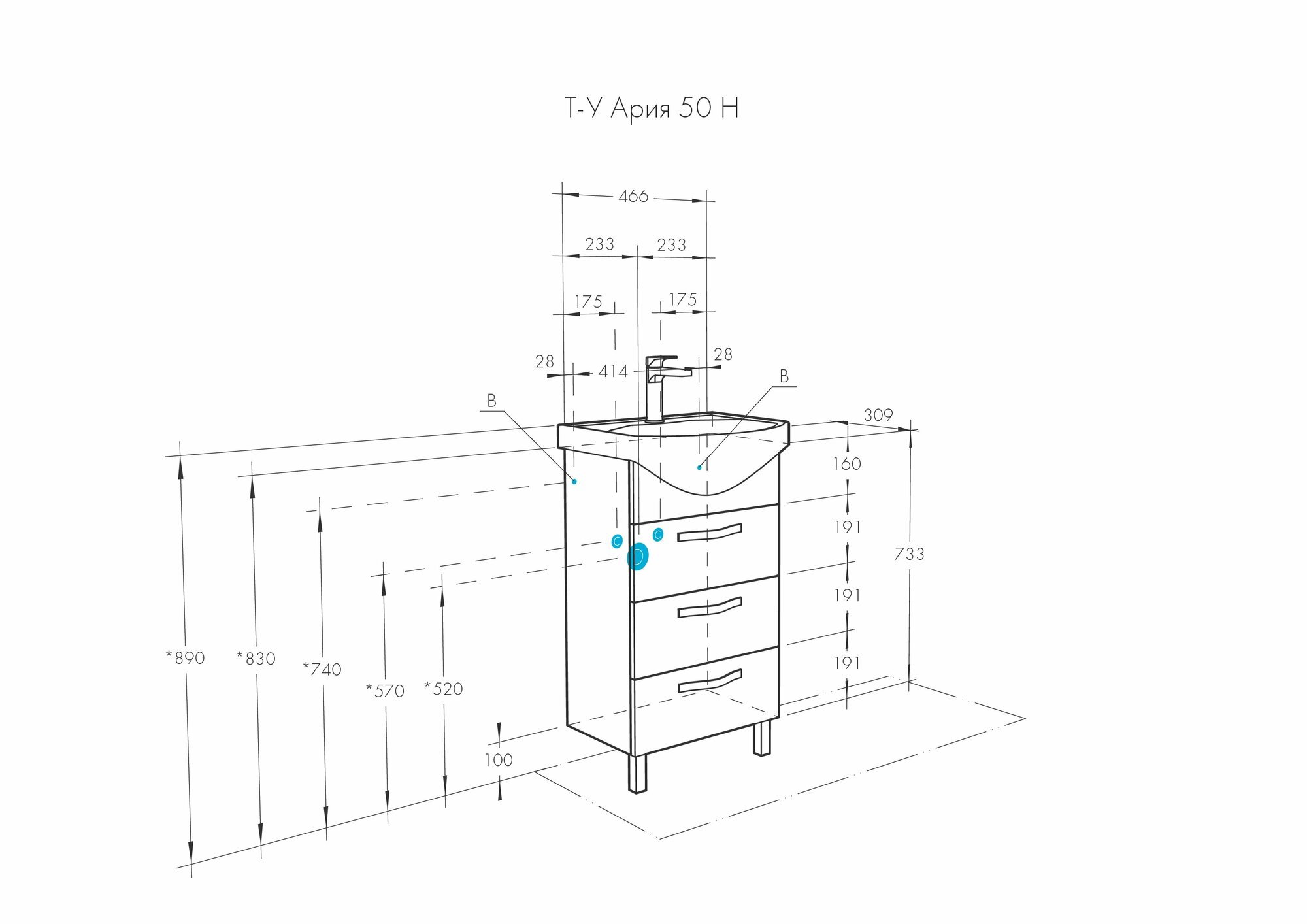 Тумба под раковину напольная с 3-я ящиками Aquaton Ария 50 Н 1A140201AA010