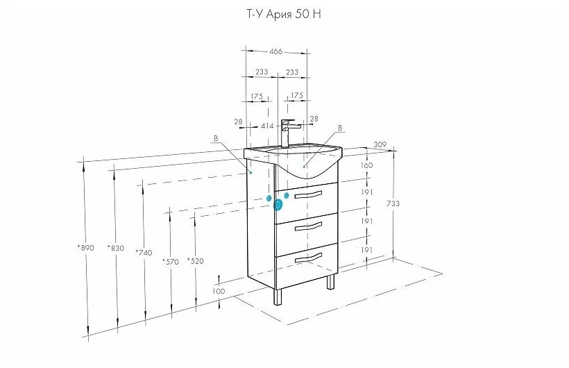 Тумба-умыв. "Ария 80 Н" 1413-1 1A141301AA010
