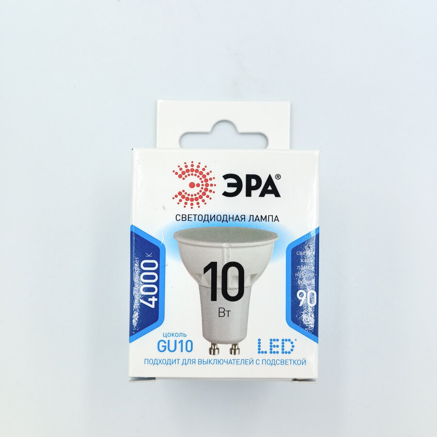 Лампа светодиодная GU10 10(90)W ЭРА 220V 840 нейтральный свет Б0032998