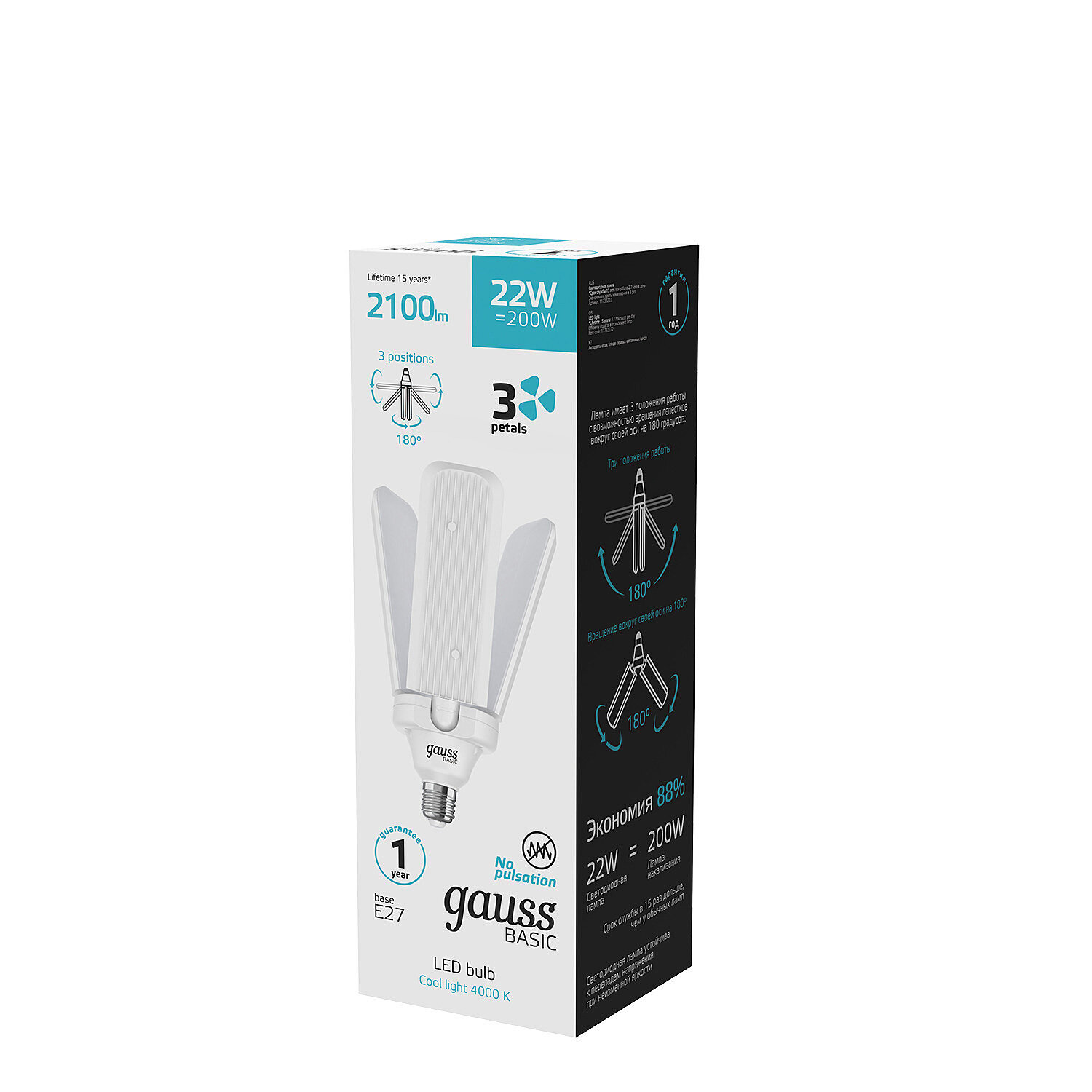 Светодиодная лампа Gauss Basic 22W 2100lm 4000K E27 Клевер-3 LED 1/20
