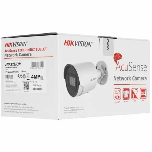 Видеокамера цилиндрическая IP 4Мп уличная EXIR-подсветка 40м объектив 4мм технология AcuSense (DS-2CD2043G2-IU(4mm)) Hikvision
