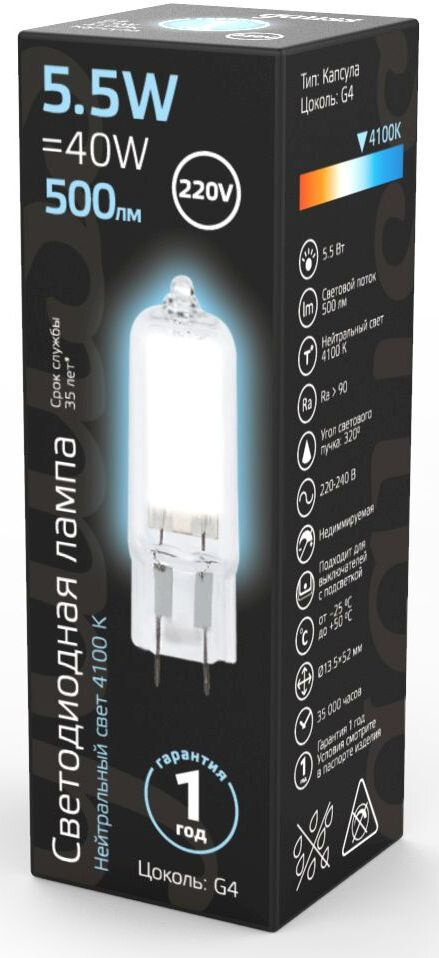 СохранитьЛампа капсульная светодиодная Gauss Black G4, 5.5 Вт, 500ЛМ, 4100K, AC220-240В, стекло интересное: