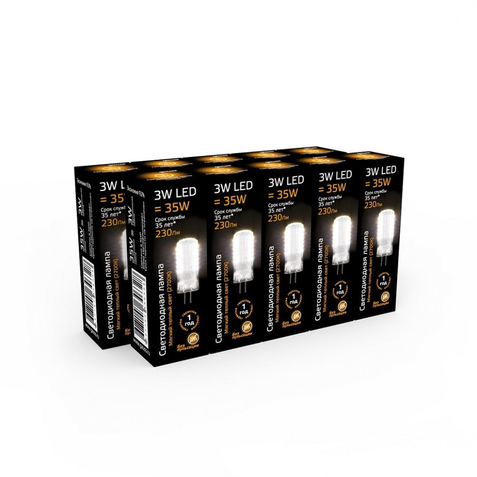 Упаковка ламп 10шт Gauss G4 AC220-240V 3.5W 260lm 4100K стекло LED 1/10/200