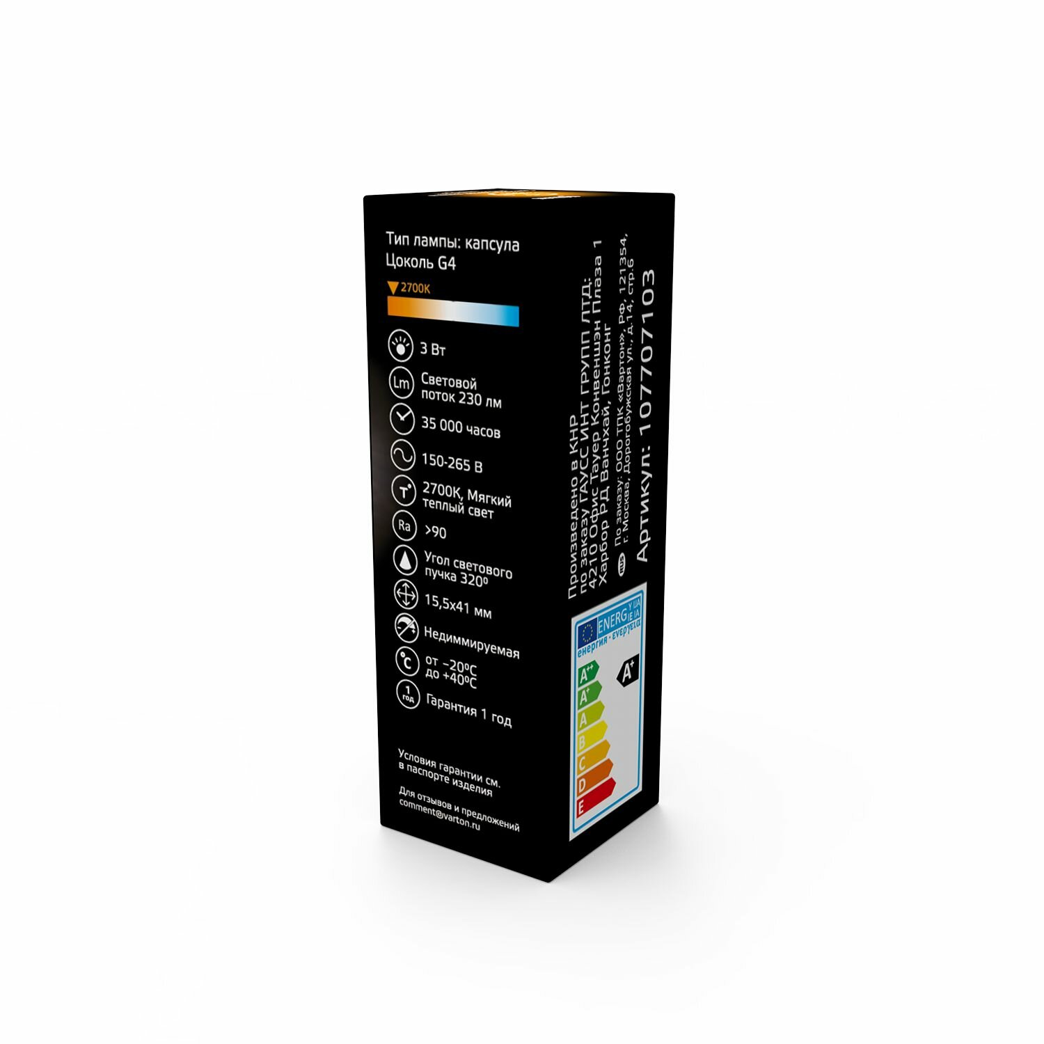 СохранитьЛампа капсульная светодиодная Gauss Black G4, 3 Вт, 230ЛМ, 2700K, AC150-265В, силикон интересное:
