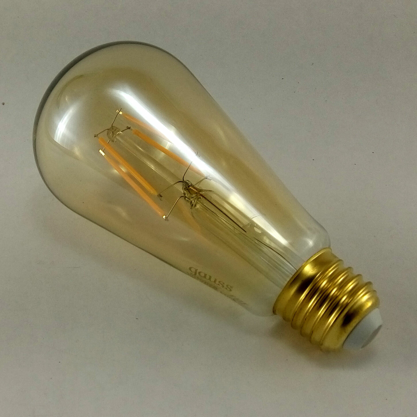 Лампа светодиод. (LED) декор. Эдисон Е27 филамент. 6Вт 550лм 2400К 230В янтарн. прозр. Gauss