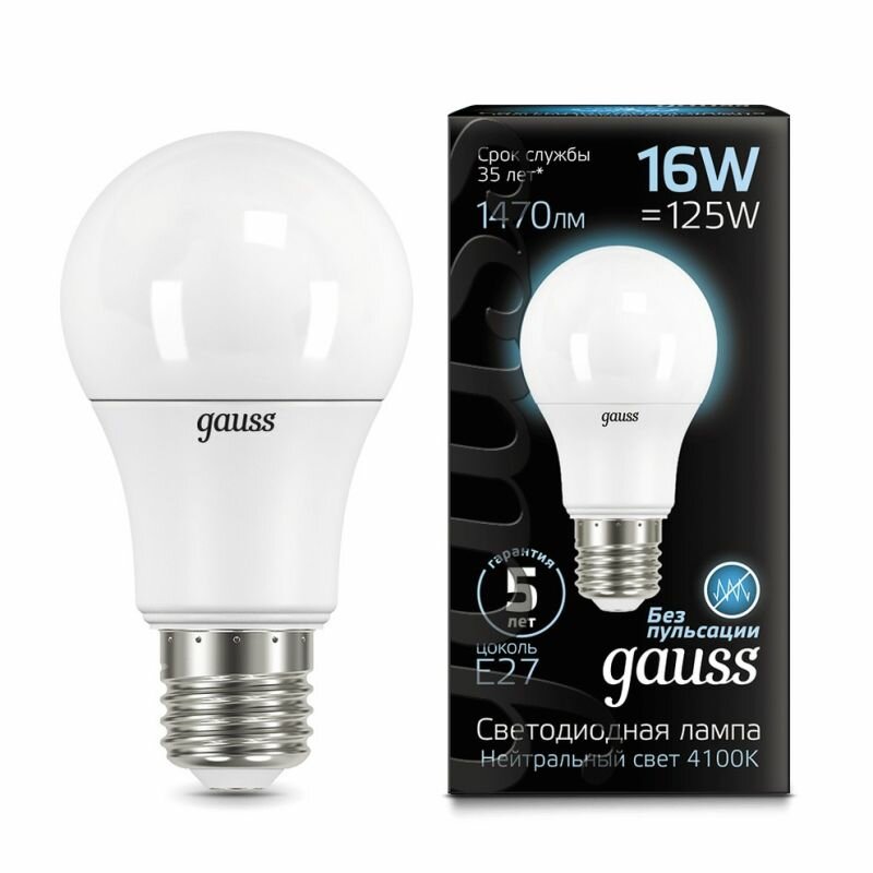 Лампа светодиодная gauss 102502216, E27, A60, 16 Вт, 4100 К