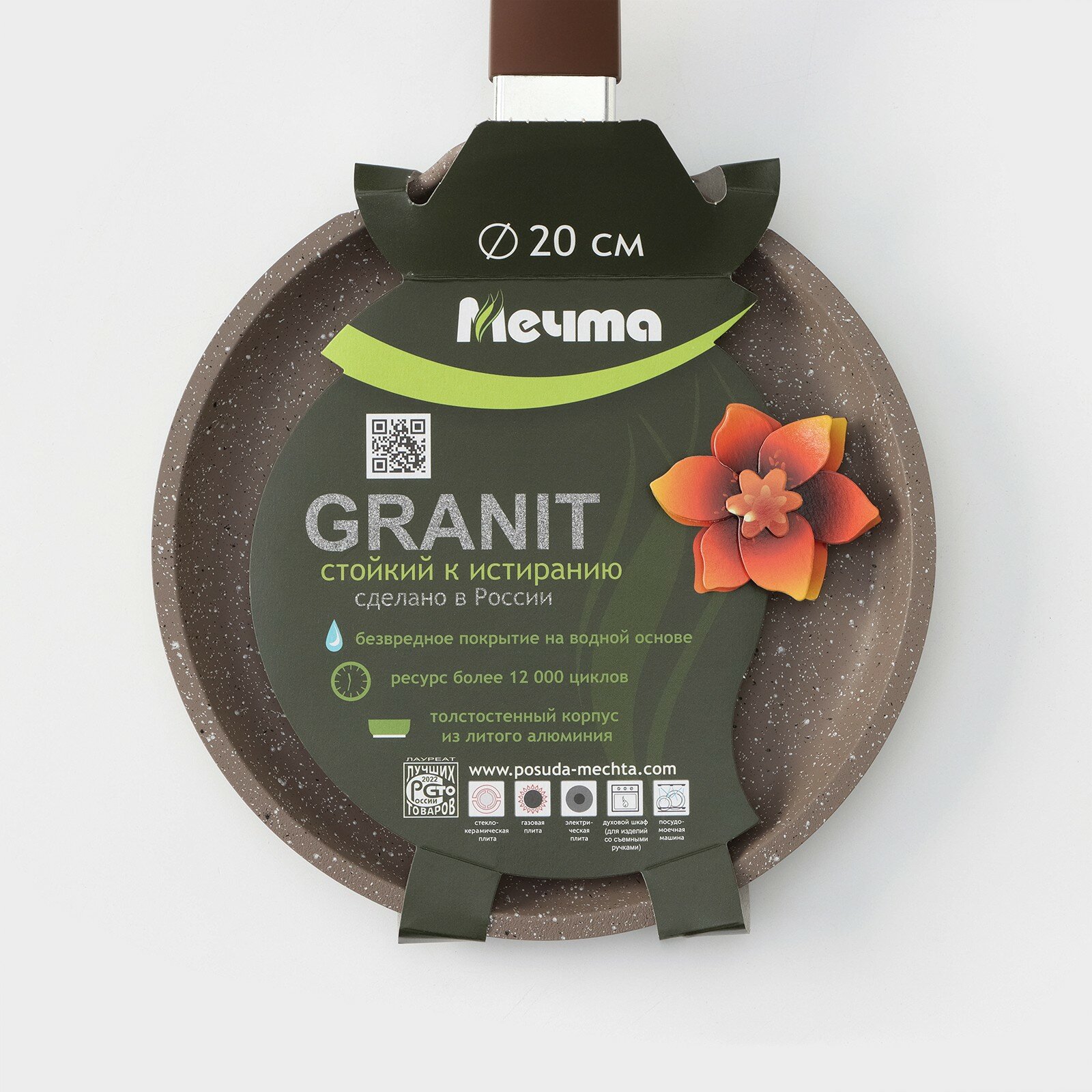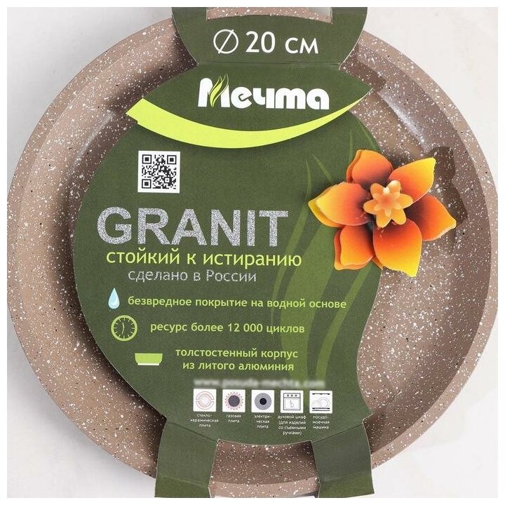 СохранитьСковорода блинная "Мечта" Гранит brown, d=20 см, пластиковая ручка, антипригарное покрытие, коричневый интересное: