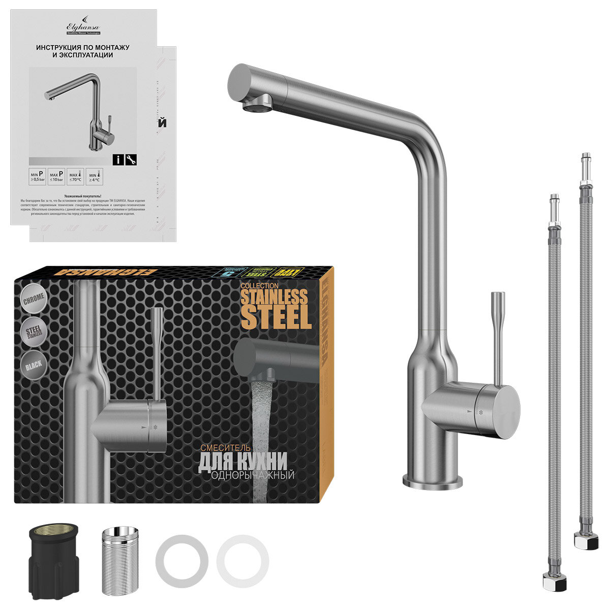 Купить Смеситель для кухни из нержавейки с поворотным аэратором и изливом Elghansa 56A2026-Steel однорычажный, нержавеющая сталь