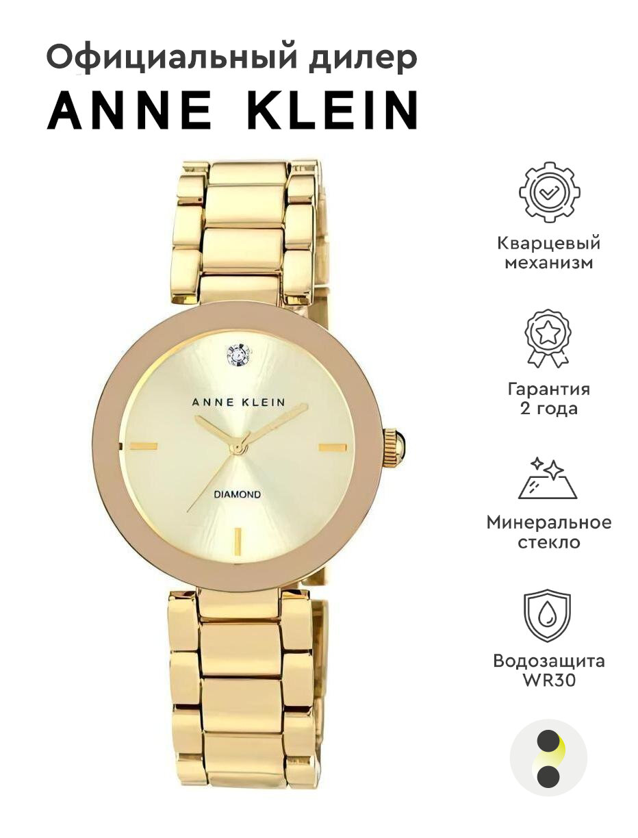 Часы наручные женские Anne Klein 1362CHGB, Кварцевые, 38 мм