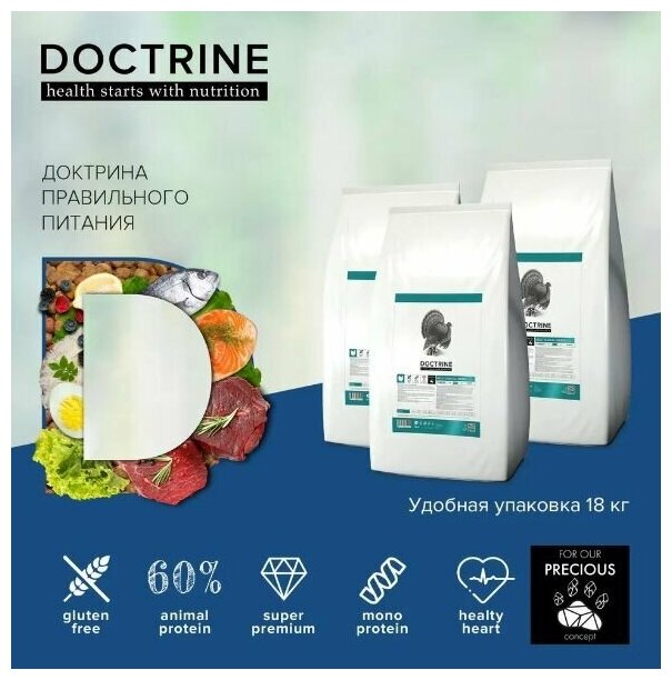 Doctrine - Полнорационный сухой корм для взрослых собак всех пород, с Индейкой, 18 кг (18 кг)