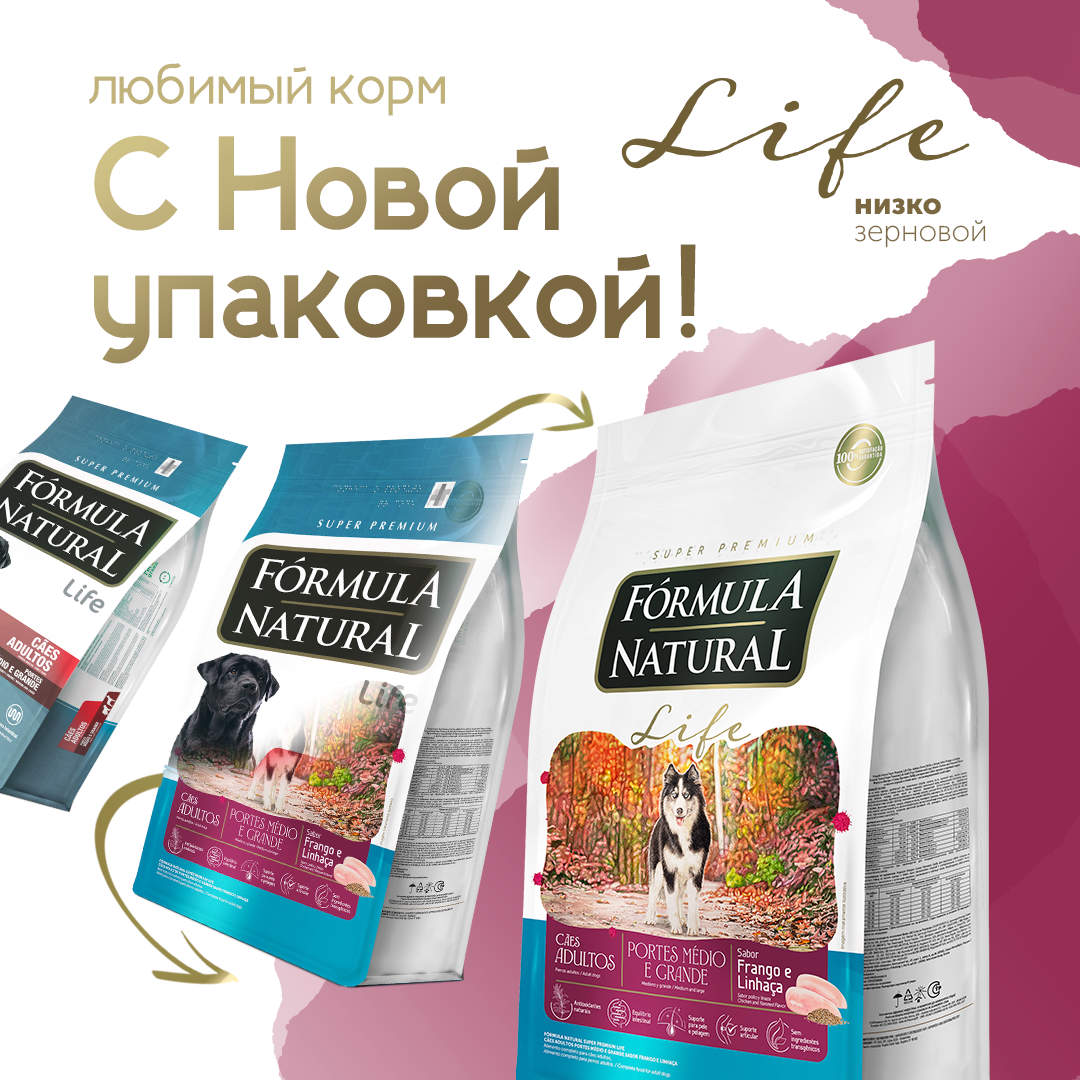 СохранитьСухой корм для взрослых собак средних и крупных пород, Formula Natural Life Super Premium - низкозерновой, полнорационный, с курицей, Бразилия, 15 кг интересное: