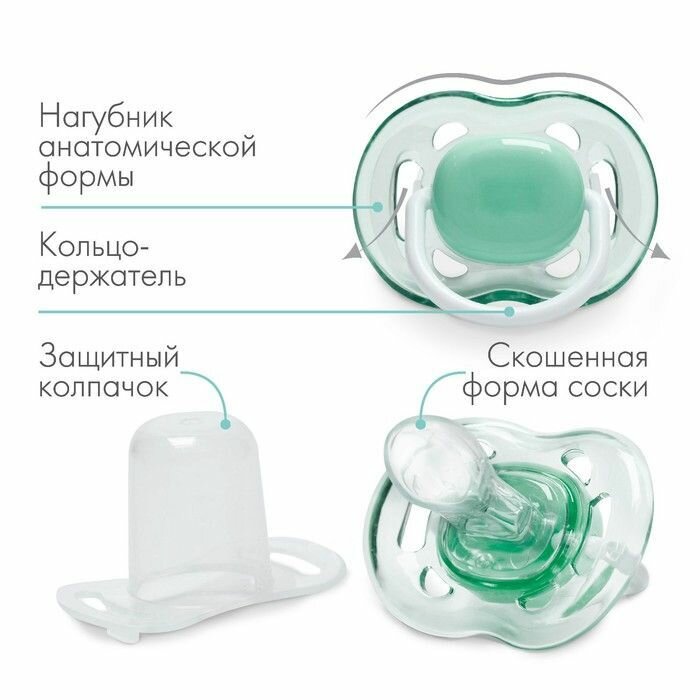 Купить Соска - пустышка силиконовая ортодонтическая, от 6 мес., с колпачком, цвет зеленый