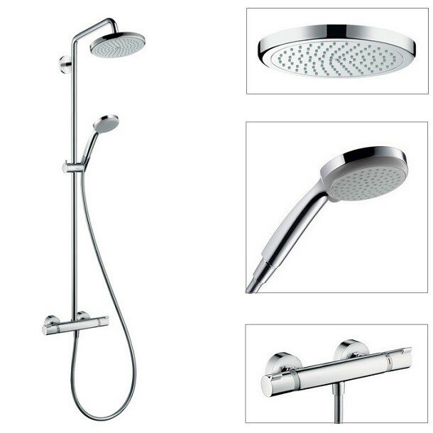 Croma, душевая система, 1 режим, 22 см, round, неповор. излив, термостат, верхний душ, с лейкой, арт. 27223000, Hansgrohe