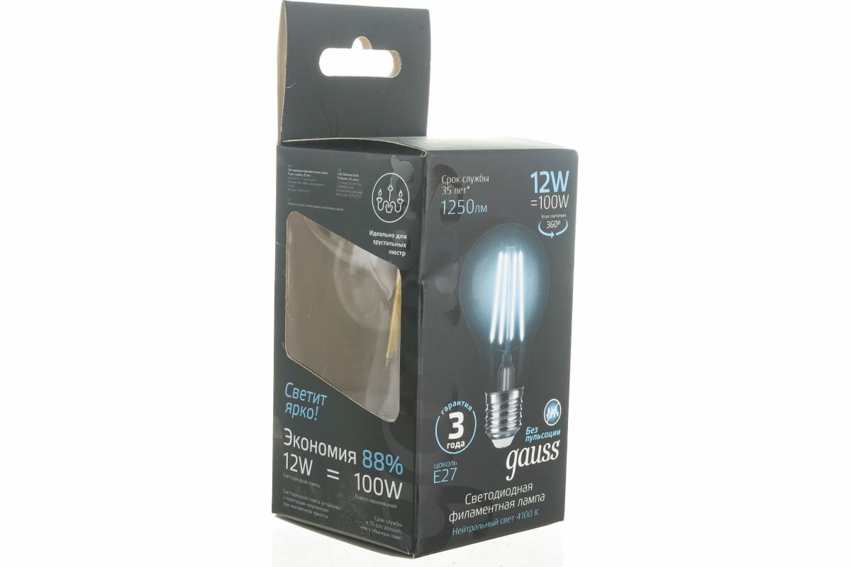 Ниже Вы можете прочитать отзывы на Лампа Gauss Filament А60 12W 1250lm 4100К Е27 LED, ознакомится с подробными характеристиками, посмотреть интересные обзоры и фотографии на Лампа Gauss Filament А60 12W 1250lm 4100К Е27 LED.