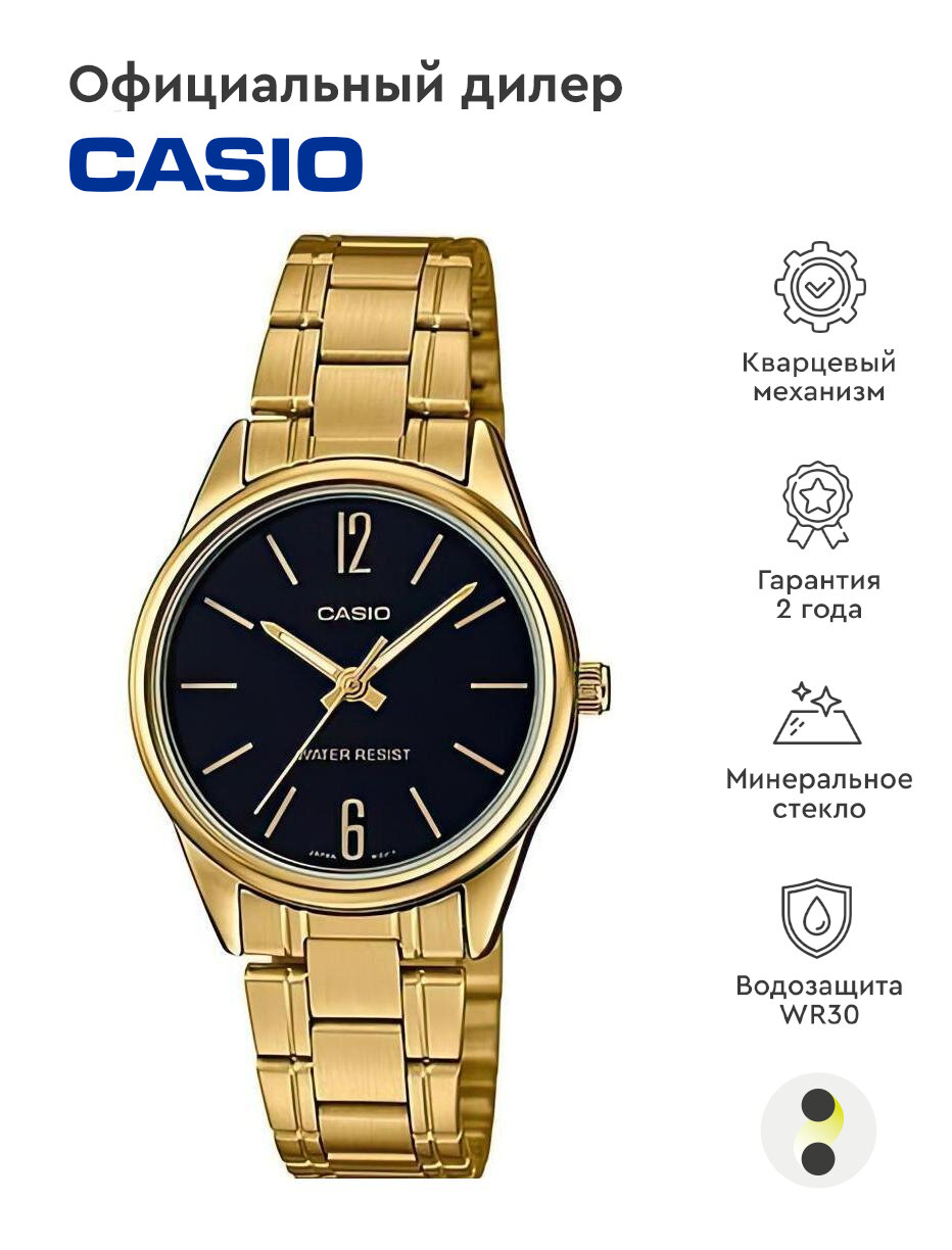 Наручные часы CASIO LTP-V005G-1B, золотой, черный