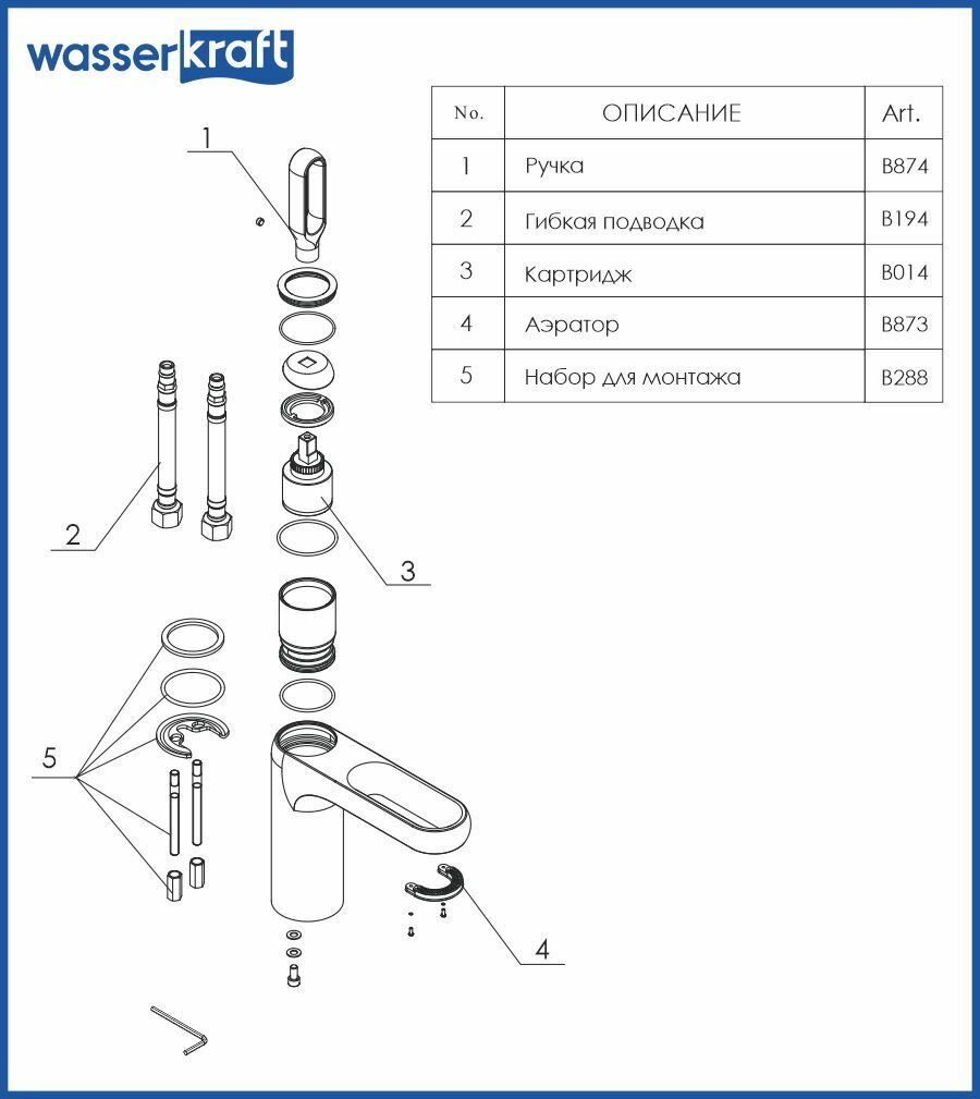 WasserKRAFT Kammel 1803 Смеситель для умывальника