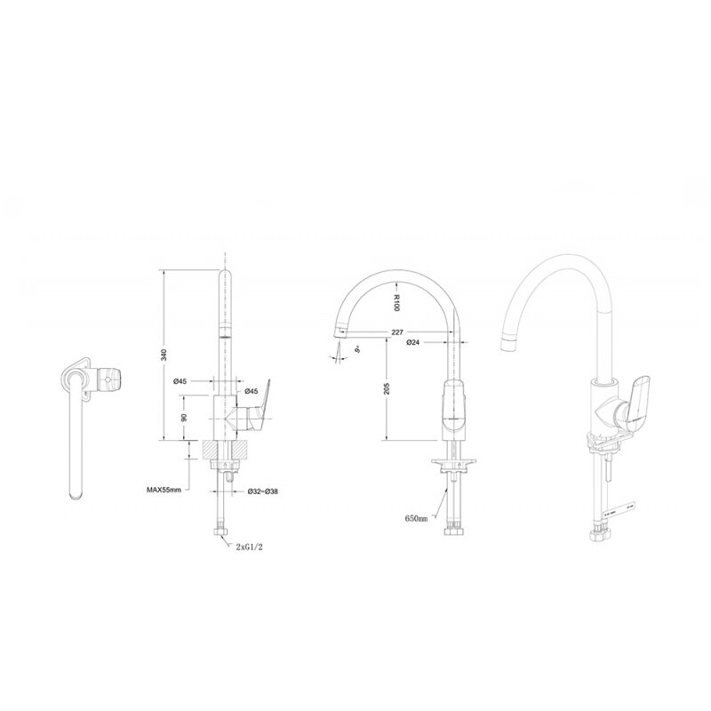 | Длина излива | 227 мм |