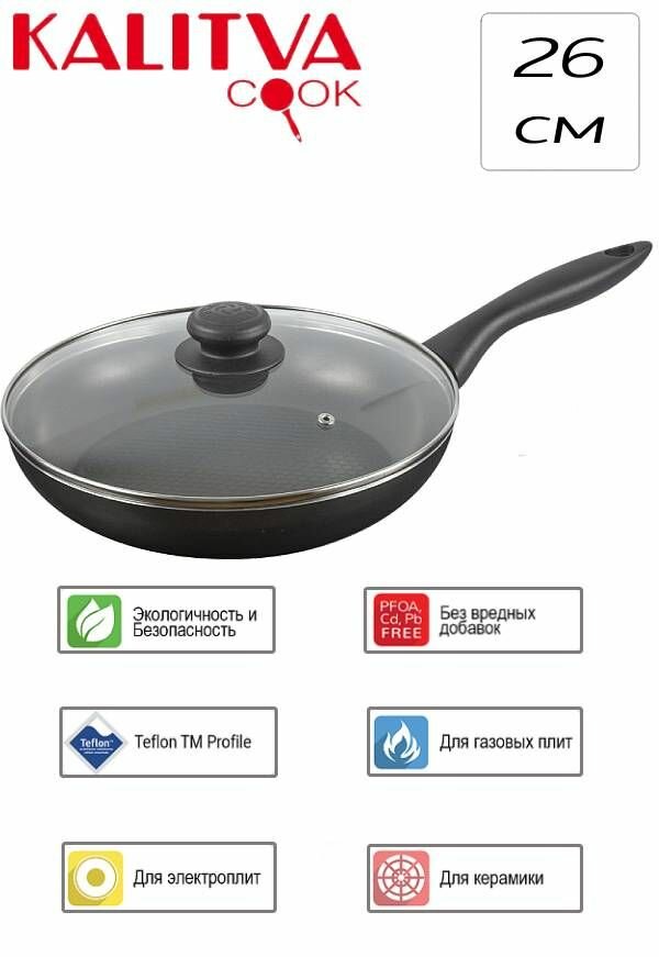 Сковорода Калитва Кумир, диаметр 26 см со стеклянной крышкой . интересное: