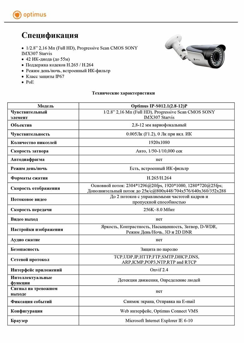 Optimus IP-S012.1(2.8-12)P Видеокамера