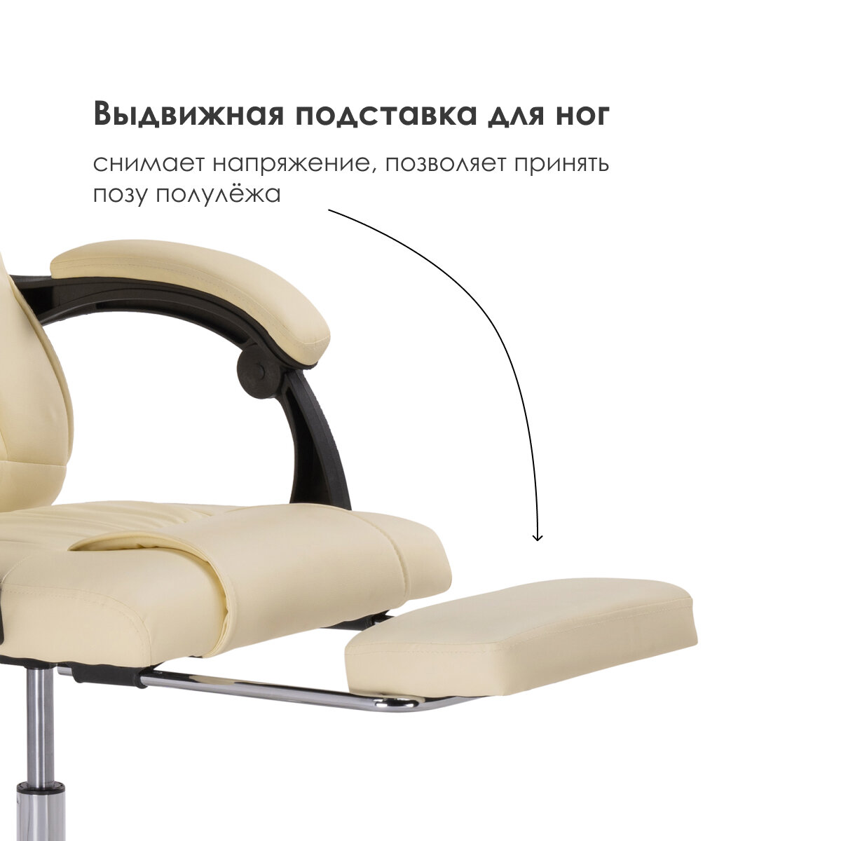 | Конструктивные особенности | подлокотники / колеса (ролики) / подставка для ног / газлифт |