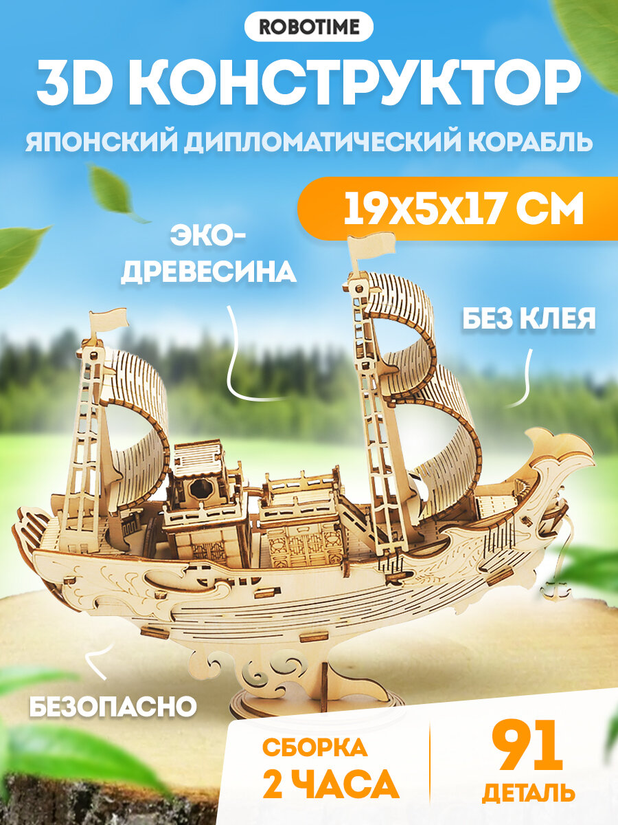 Купить Японский дипломатический корабль - 3D Деревянный конструктор Robotime 91 дет 18*5*16 см TG307
