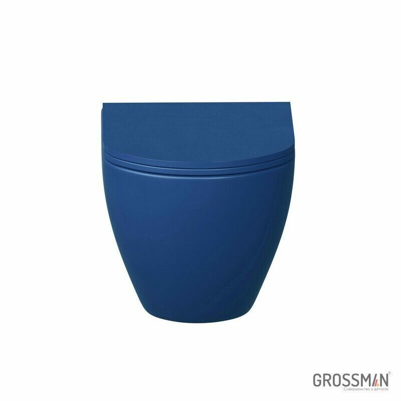 Купить Унитаз подвесной Grossman GR-4455BLMS безободковый с тонкой крышкой, синий матовый