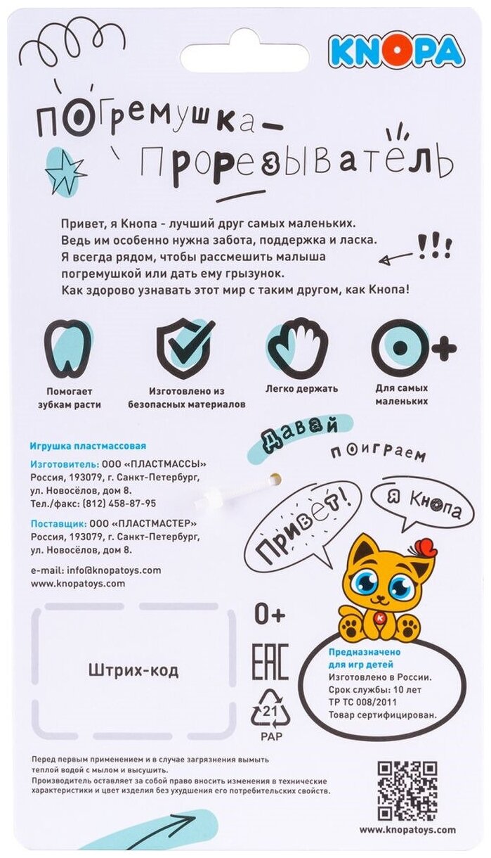 | Отзыв: | Как погремушка не состоялась. А вот как грызунок и молоток вполне))) |