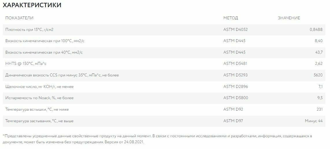 | Дополнительная информация | температура застывания: -44°С; щелочное число: 7.36 мг КОН/г; плотность при 15°С: 846 кг/м³; индекс вязкости : 172 |