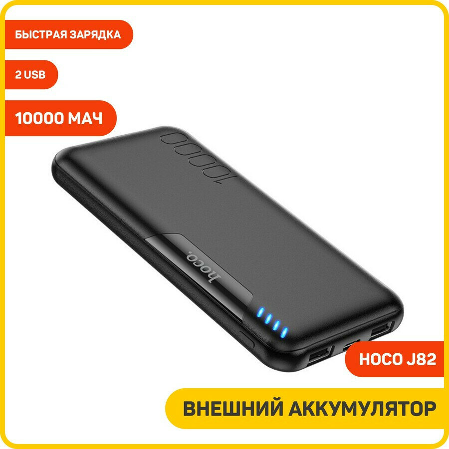 Универсальный Доп. Аккумулятор 10000mAh, J82, HOCO, выход: 2 USB (5V/2A), черный