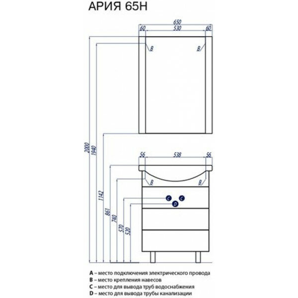 Тумба с раковиной белый 65 см Акватон Ария 1A1234K0AA010 интересное: