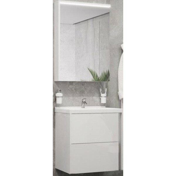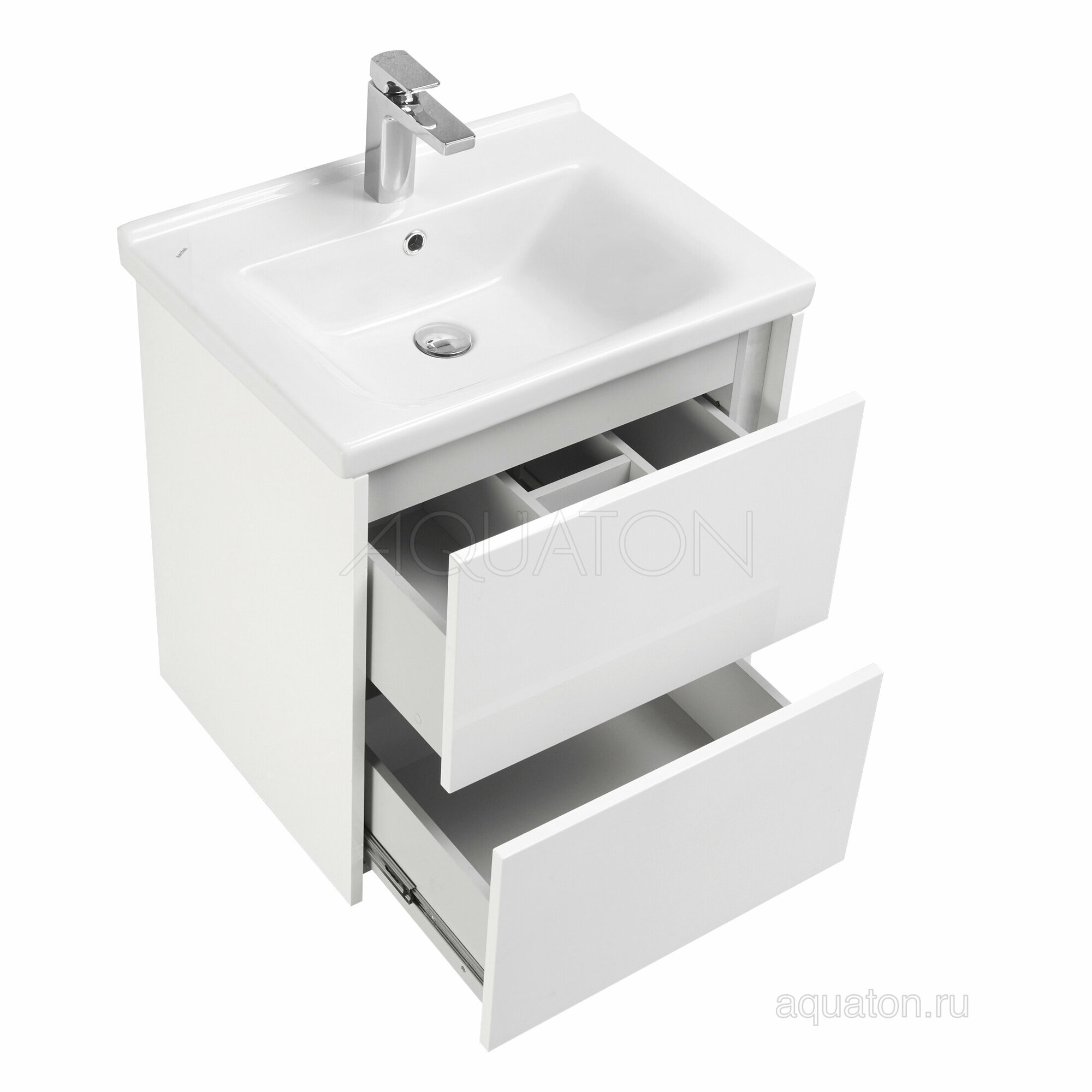 Тумба с раковиной для ванной подвесная AQUATON 1A2580K2AJ010 Сохо 60 белый глянец, раковина Элина 60