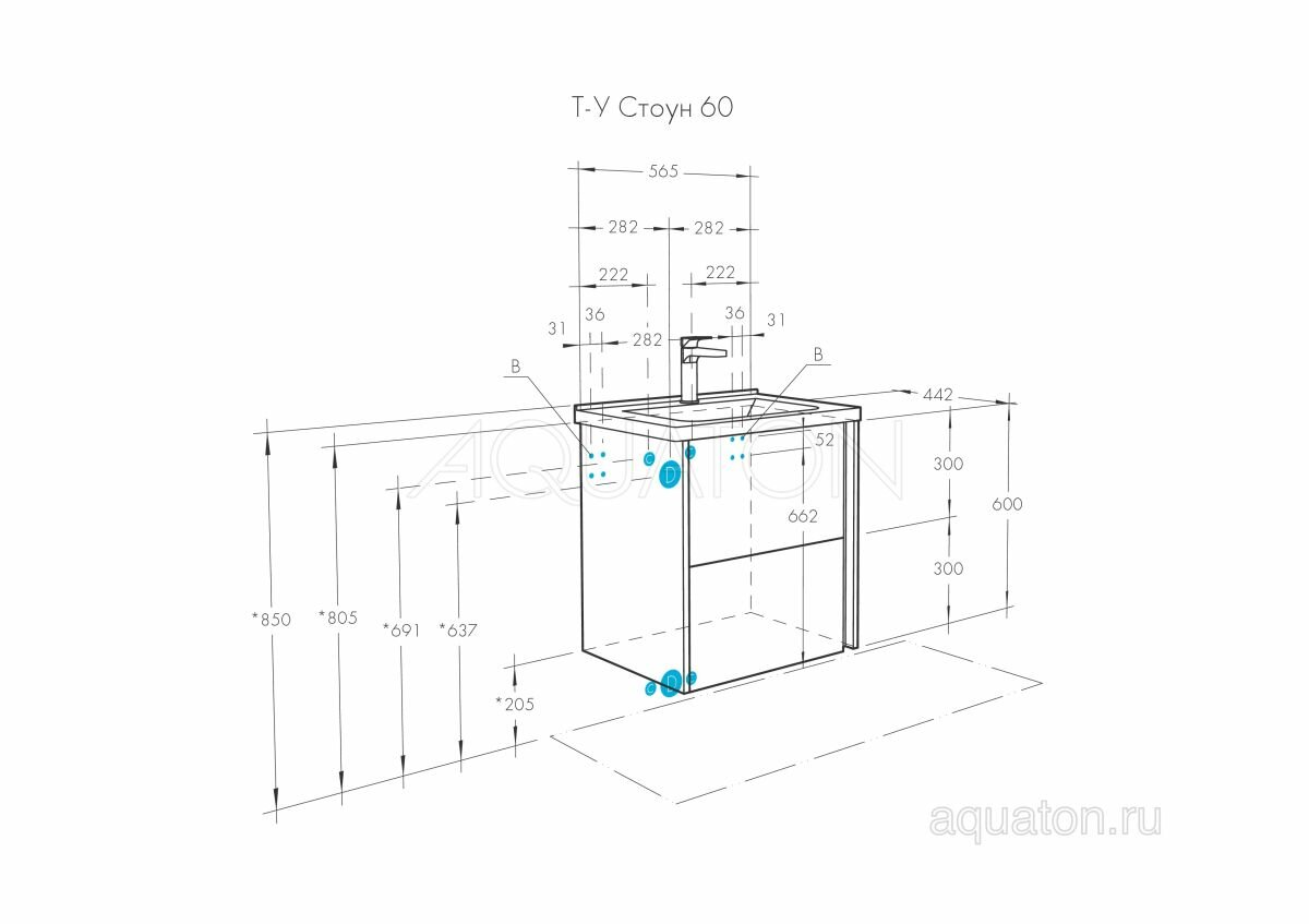 Тумба под раковину Акватон 1A231401SX010 Стоун 60 Тумба под раковину, 56х44 см, белый