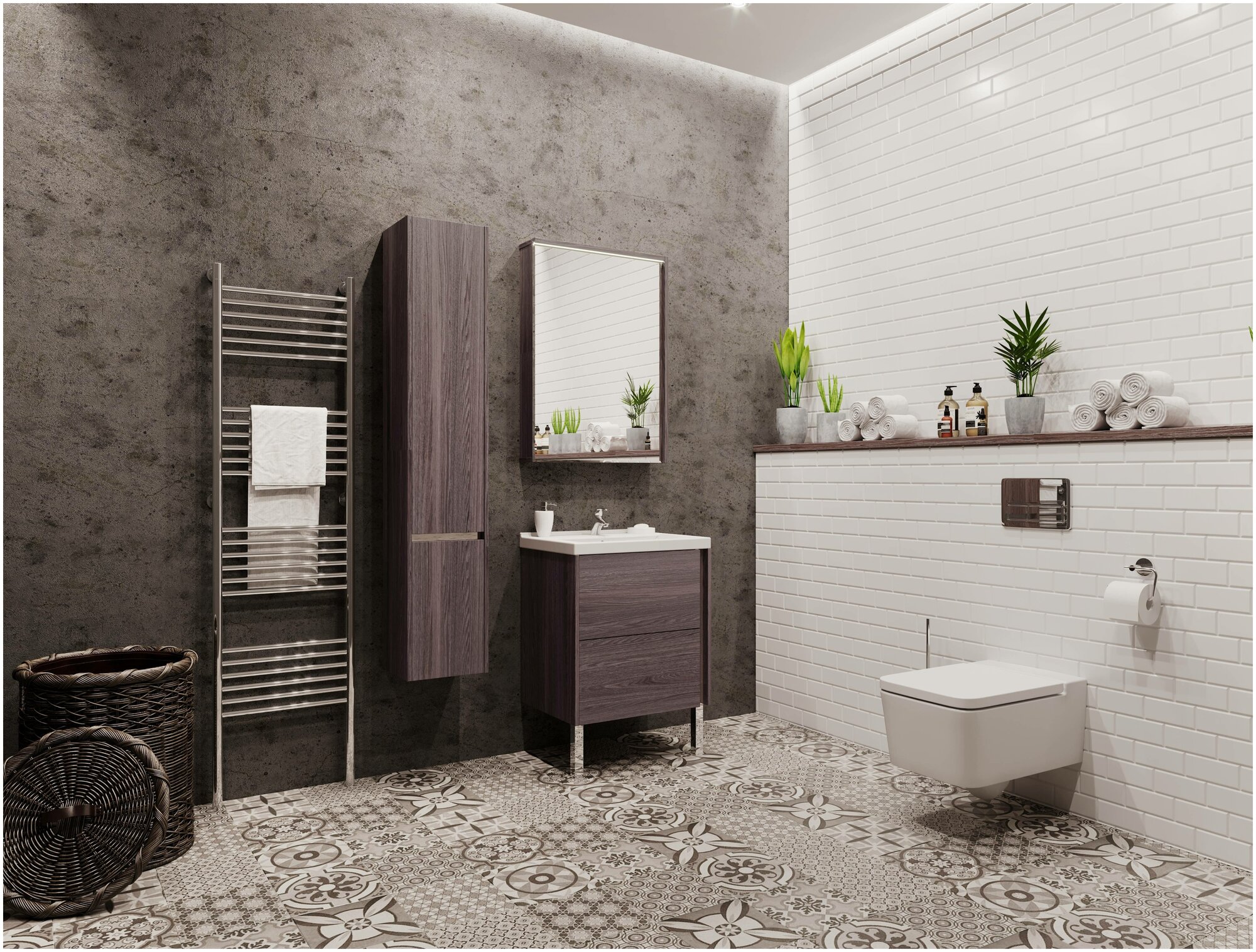 Тумба под раковину в ванную AQUATON 1A247701LQX60 Лофт Урбан 100 серый графит, дуб орегон