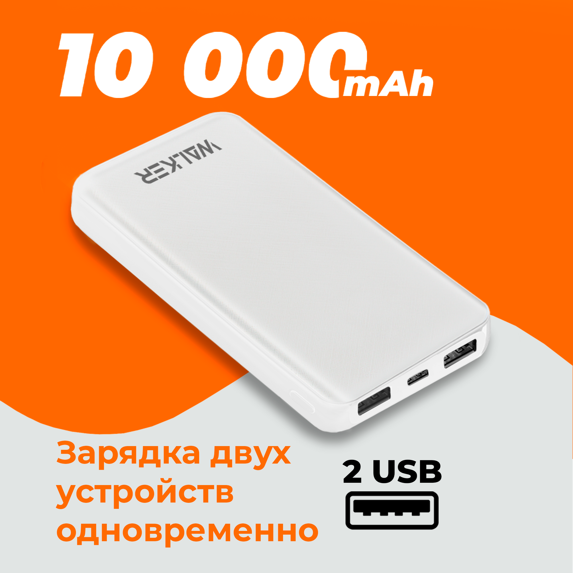 Купить Повербанк 10000 mAh, WALKER, WB-410, 2.4 А, белый // powerbank, пауэр банк, power bank, павербанк, повербанк xiaomi, повербанк для айфона