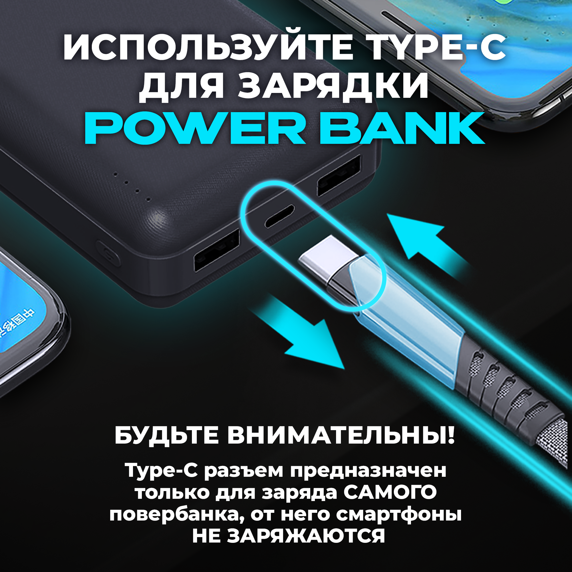 Повербанк для айфона 10000 mAh, powerbank для телефона, внешний аккумулятор, пауэрбанк для xiaomi, портативный, черный