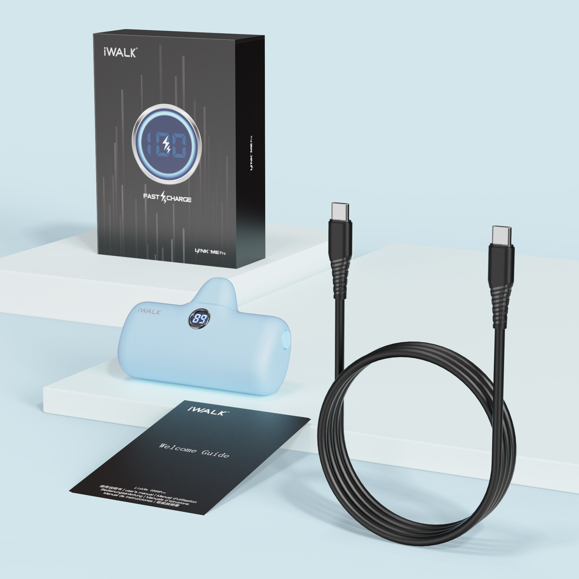 Портативный внешний аккумулятор Power Bank Type-C для Android, iPhone 15/16 iWALK 4800 mAh, пауэрбанк мини, голубой