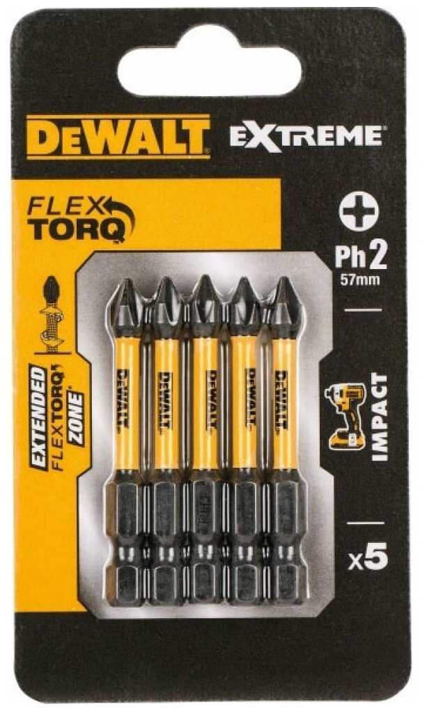 Бита DEWALT PH2х50мм (5шт) Impact Torsion DT7998T-QZ