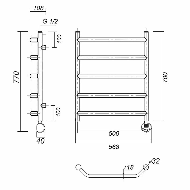 Полотенцесушитель электрический Domoterm Лаура П5 500х700 ER справа