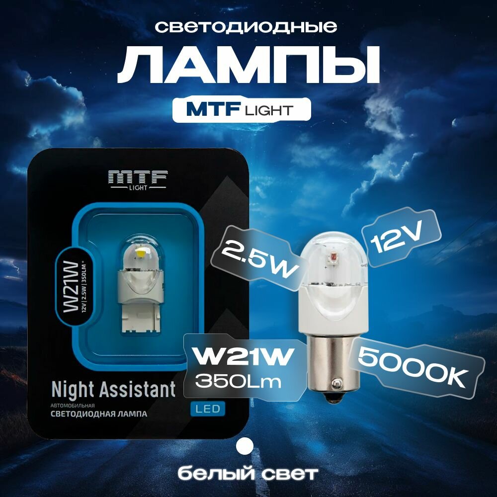 Светодиодная автолампа MTF Light серия Night Assistant 12В, 2.5Вт, W21/5W, белый, блистер, шт.