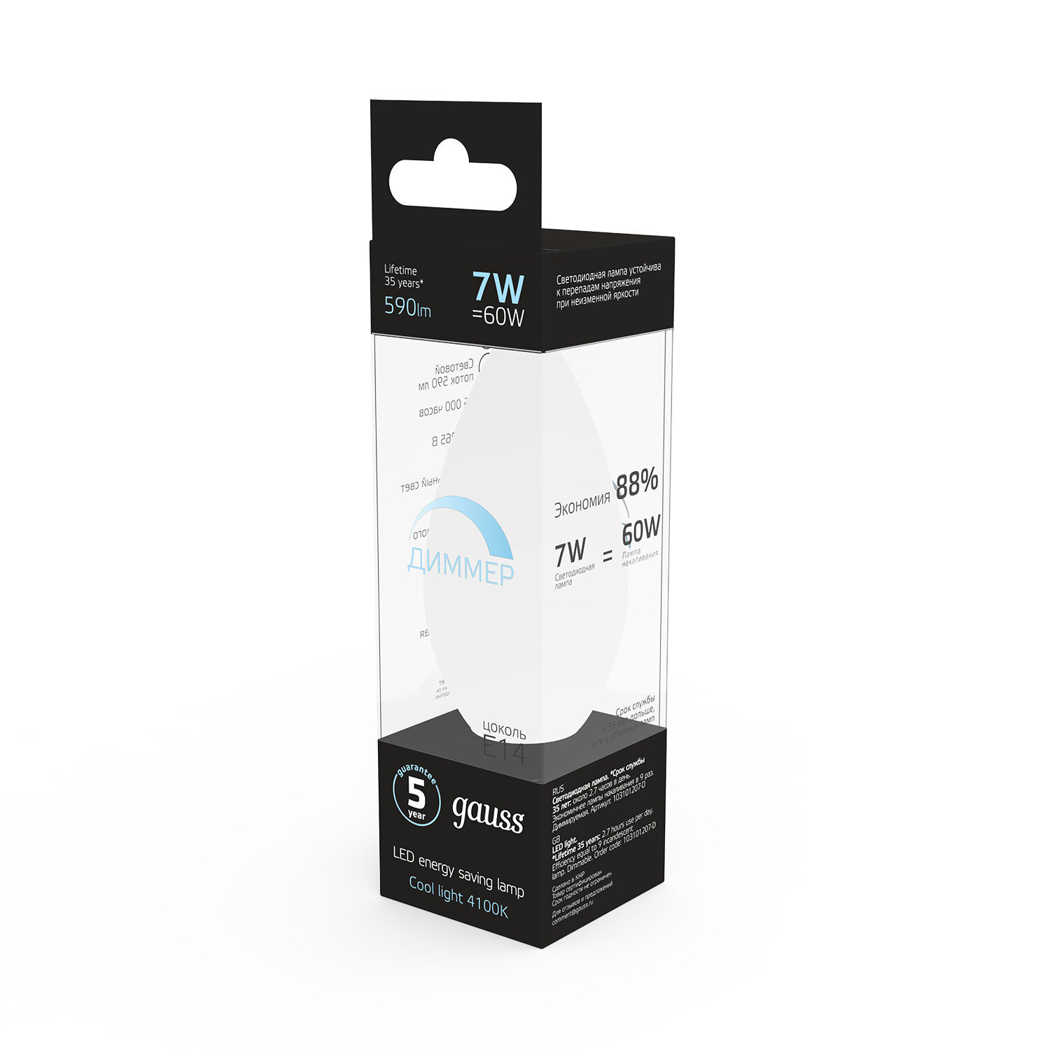 Лампа Gauss LED Свеча-dim E14 7W 590lm 4100К 103101207-D