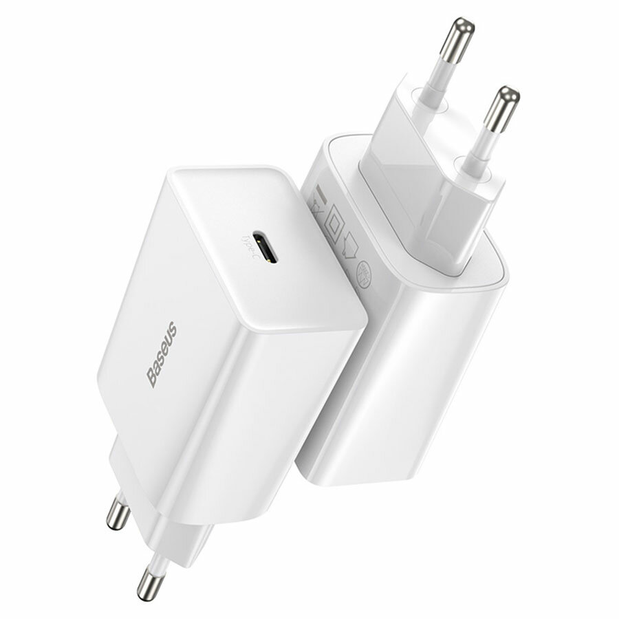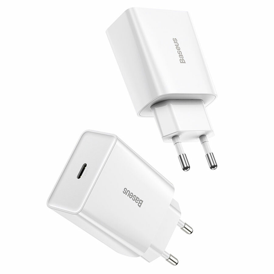 Baseus / Сетевое зарядное устройство / Адаптер Блок питания PD Type-C USB-C Speed mini 1C 20W белый