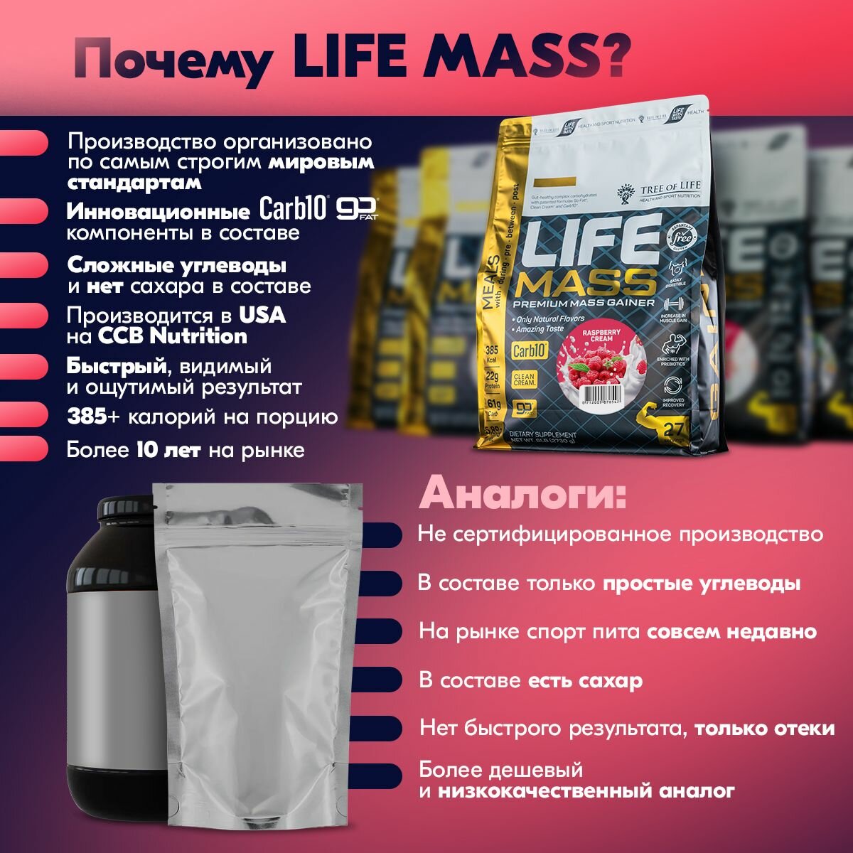 Гейнер для набора массы Life MASS Raspberry Cream 6lb