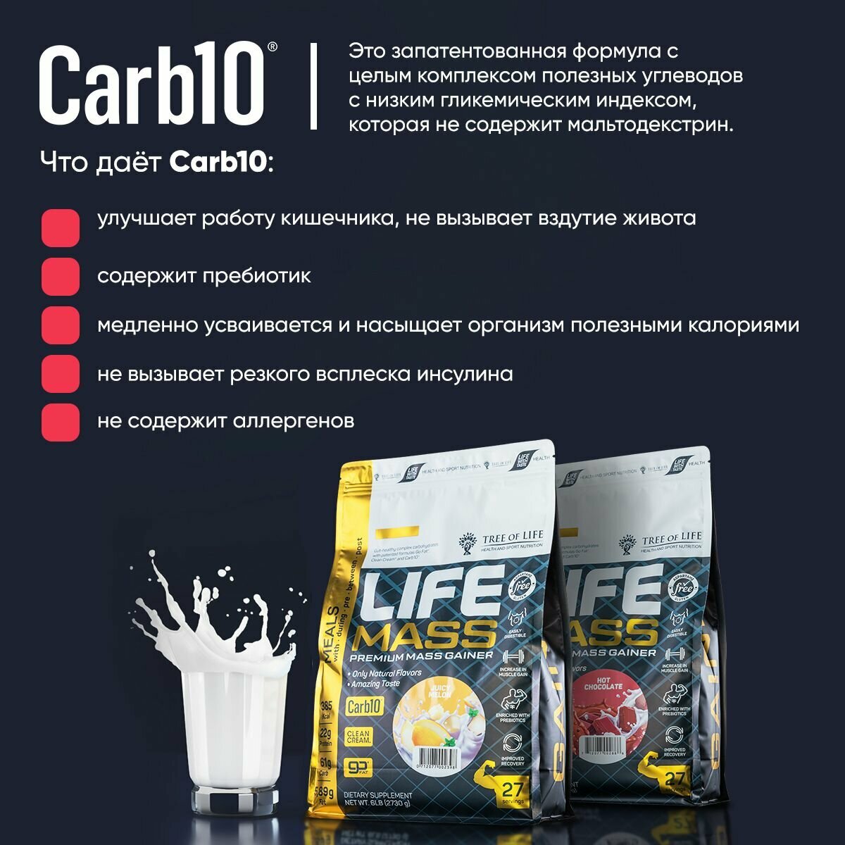 Life Mass Premium Mass Gainer 2730 gr bag, горячий шоколад