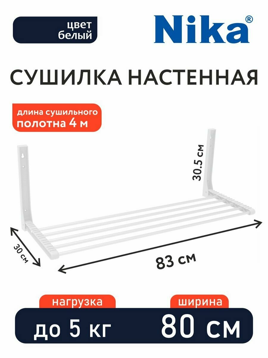 Сушилка для белья настенная Nika, складная, сушильное полотно 4 м, 80 см, серебро