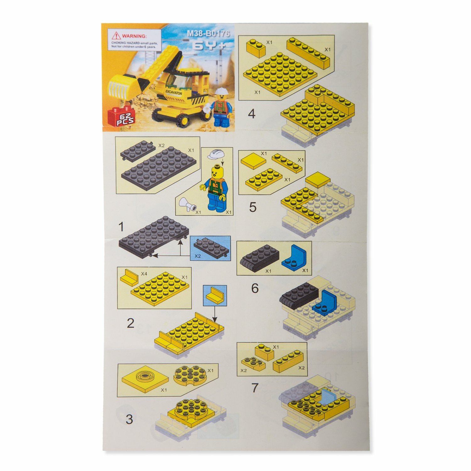 Конструктор Sluban Экскаватор 62 деталей