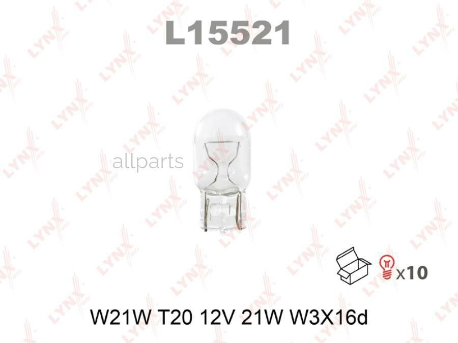 LYNXAUTO L15521 Лампа 12V W21W 21W W3x16d LYNXauto 1 шт. картон L15521
